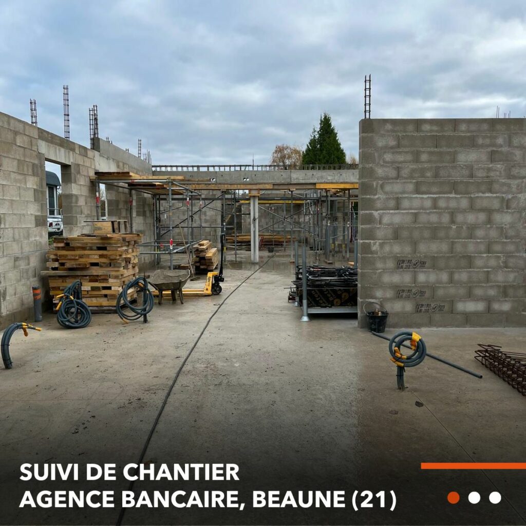 Suivi de chantier – Élévation des murs pour la future agence Crédit Agricole à Beaune (21)